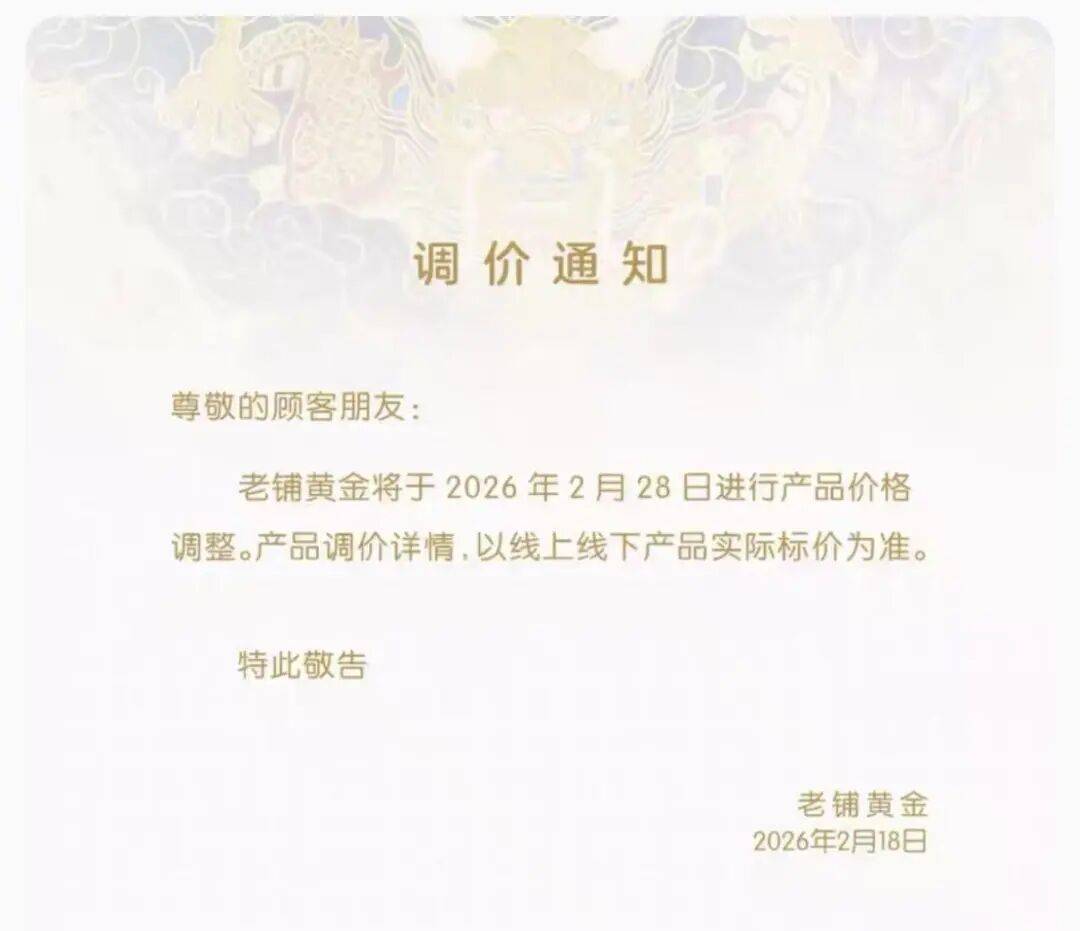 近日,老铺黄金开启了开年首轮调价,宣布于2月28日进行产品价格调整,产品调价详情,以线上线下产品实际标价为准。据悉,此次调价幅度在20%至30%之间。